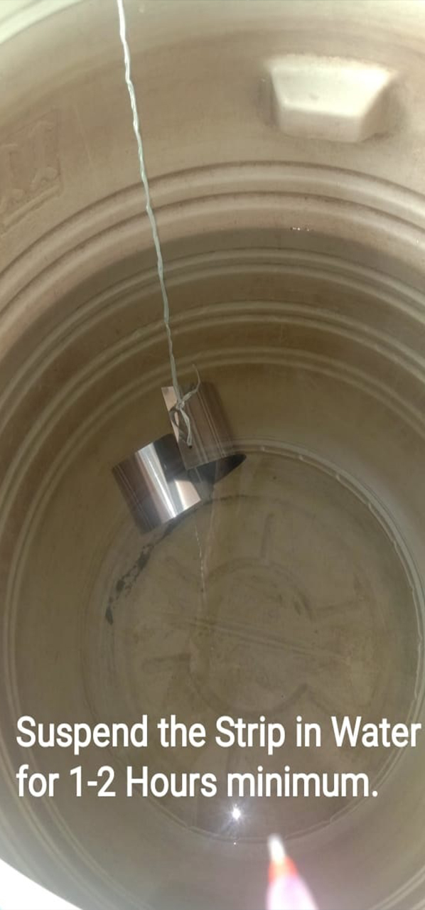 2. Drop/Suspend the Strip in water for a Minimum of 60 minutes. (upto 100 liters)
