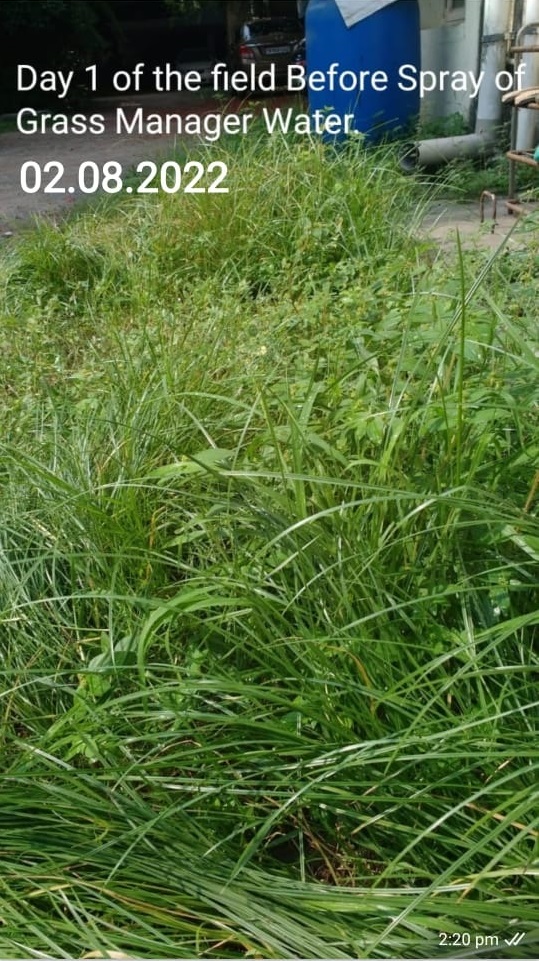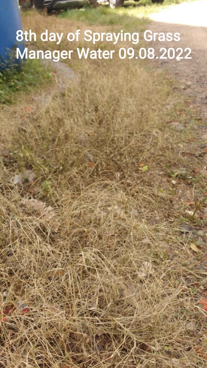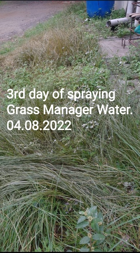 2nd Spray of Grass Manager Water was done on the, half dried weeds on the 5 th day. Wetting Agent/ Spreader was Mixed with Water.